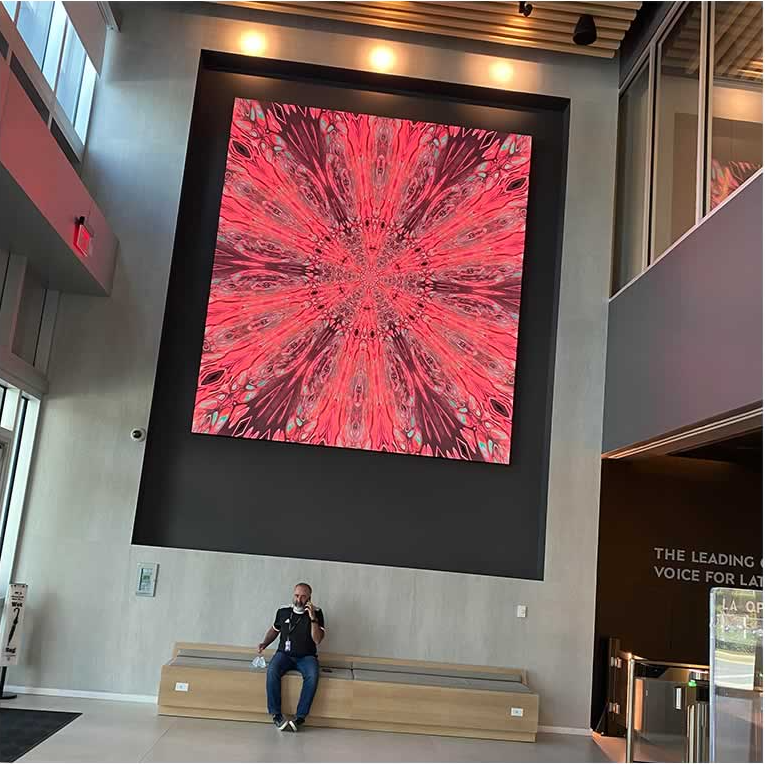 “ #ExperienceLatinoArt is a series of video-art exhibits by different contemporary Hispanic artists. The exhibits are displayed in the large screen located in the Telemundo Center main lobby. The main goal of the project is to show the diversity of artistic talent from different countries in Latin America. As part of the project, different artists will display their work in the space on a rotating basis throughout the year.