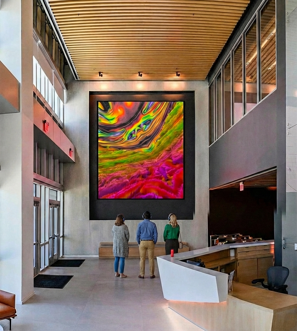 The first exhibit is titled, ‘Textura Vida by Argentinian artist Sebastian Seifert. The series of dynamic animations was inspired by the different Latin American landscapes and is intended to provide a brief moment of meditation and escape in the middle of the daily routine.”